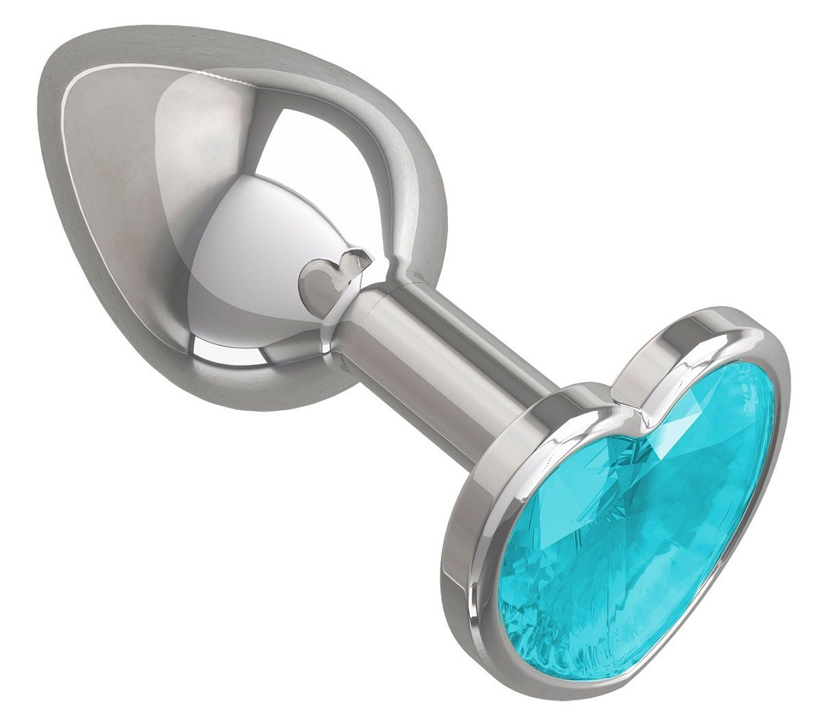Серебристая анальная втулка с голубым кристаллом-сердцем - 7 см.