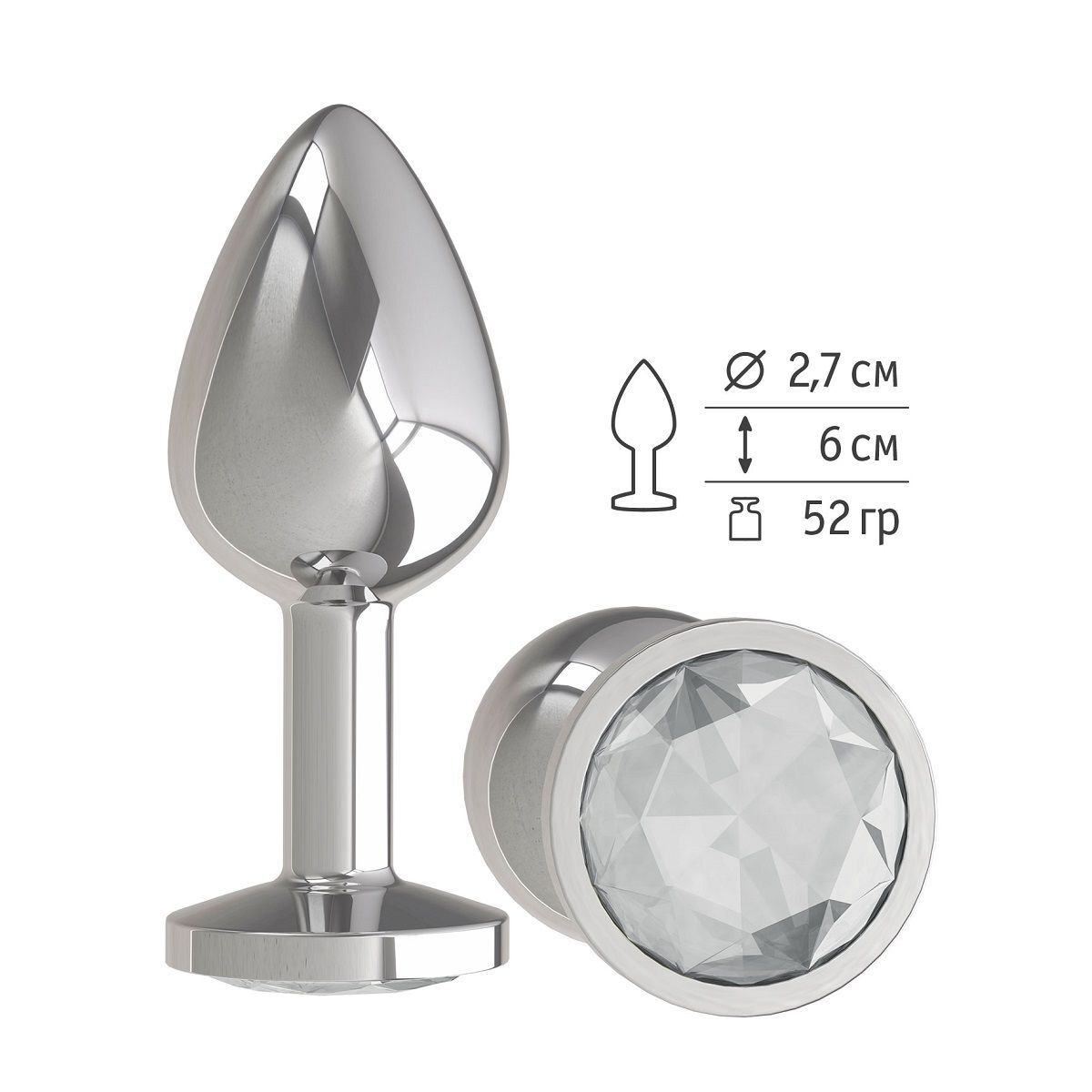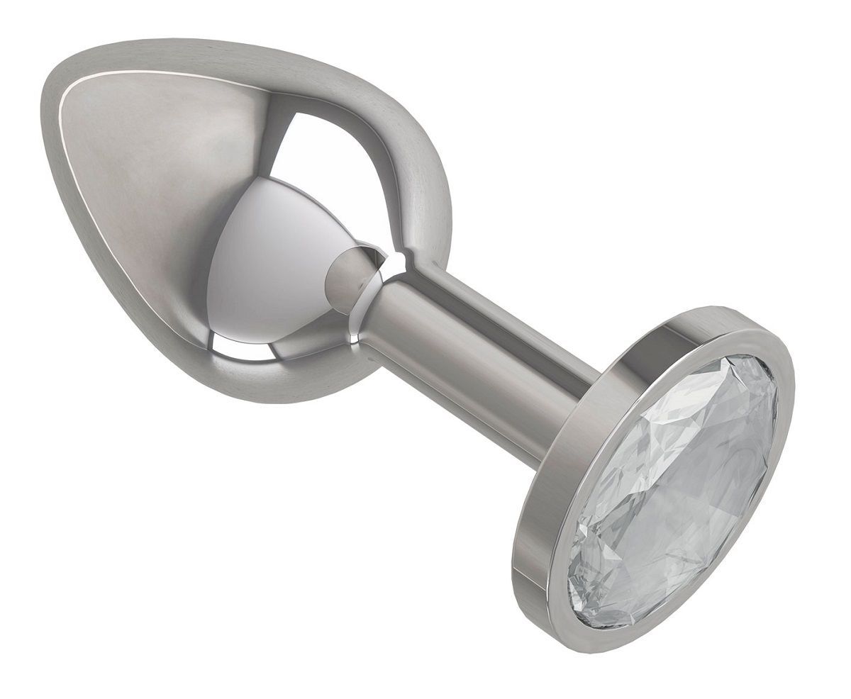 Серебристая анальная втулка с прозрачным кристаллом - 7 см.