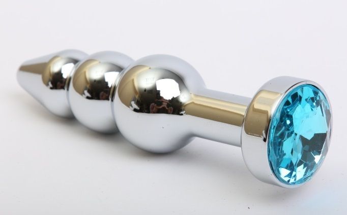 Серебристая анальная ёлочка с голубым кристаллом - 11,2 см.