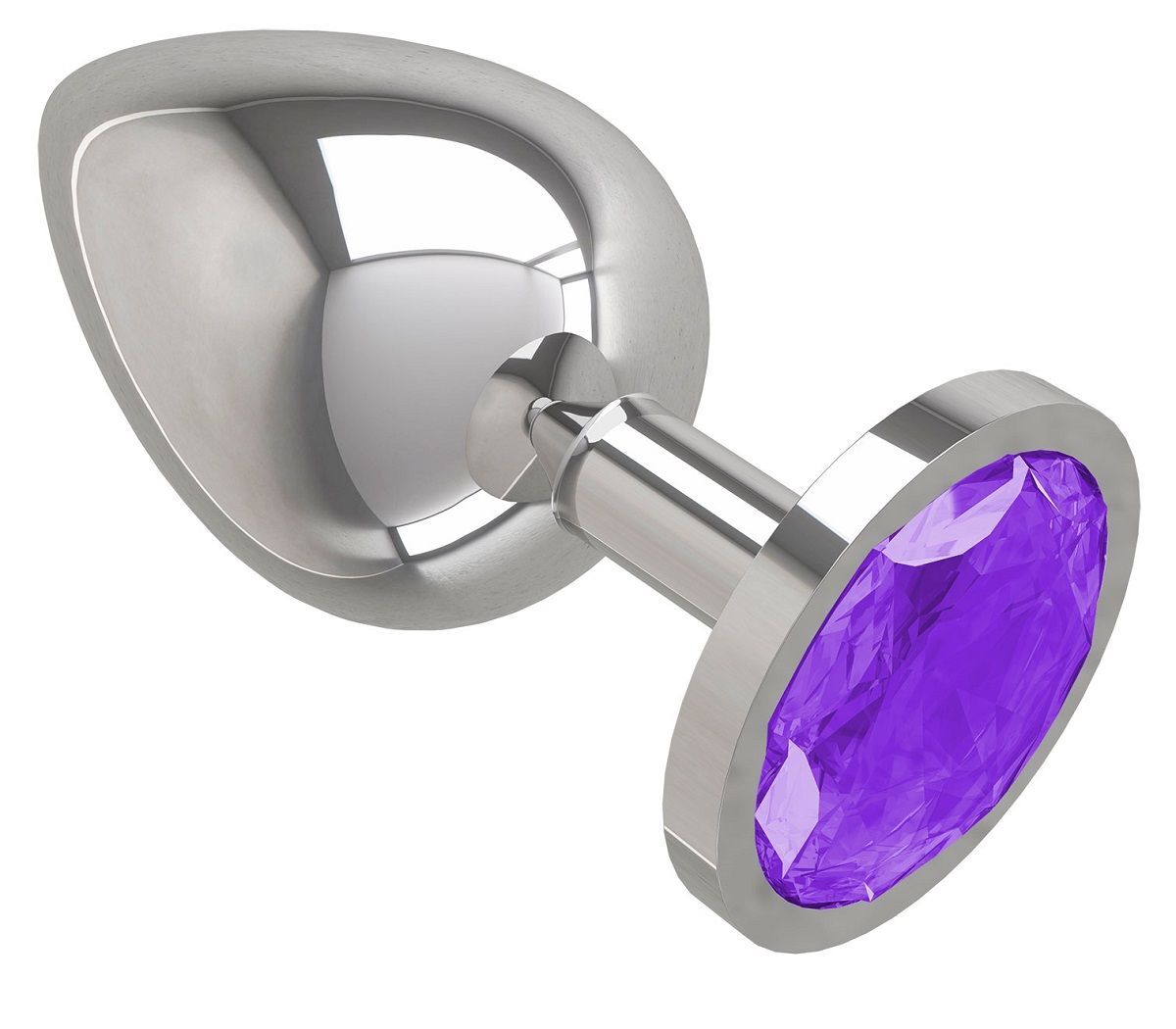 Серебристая большая анальная пробка с фиолетовым кристаллом - 9,5 см.