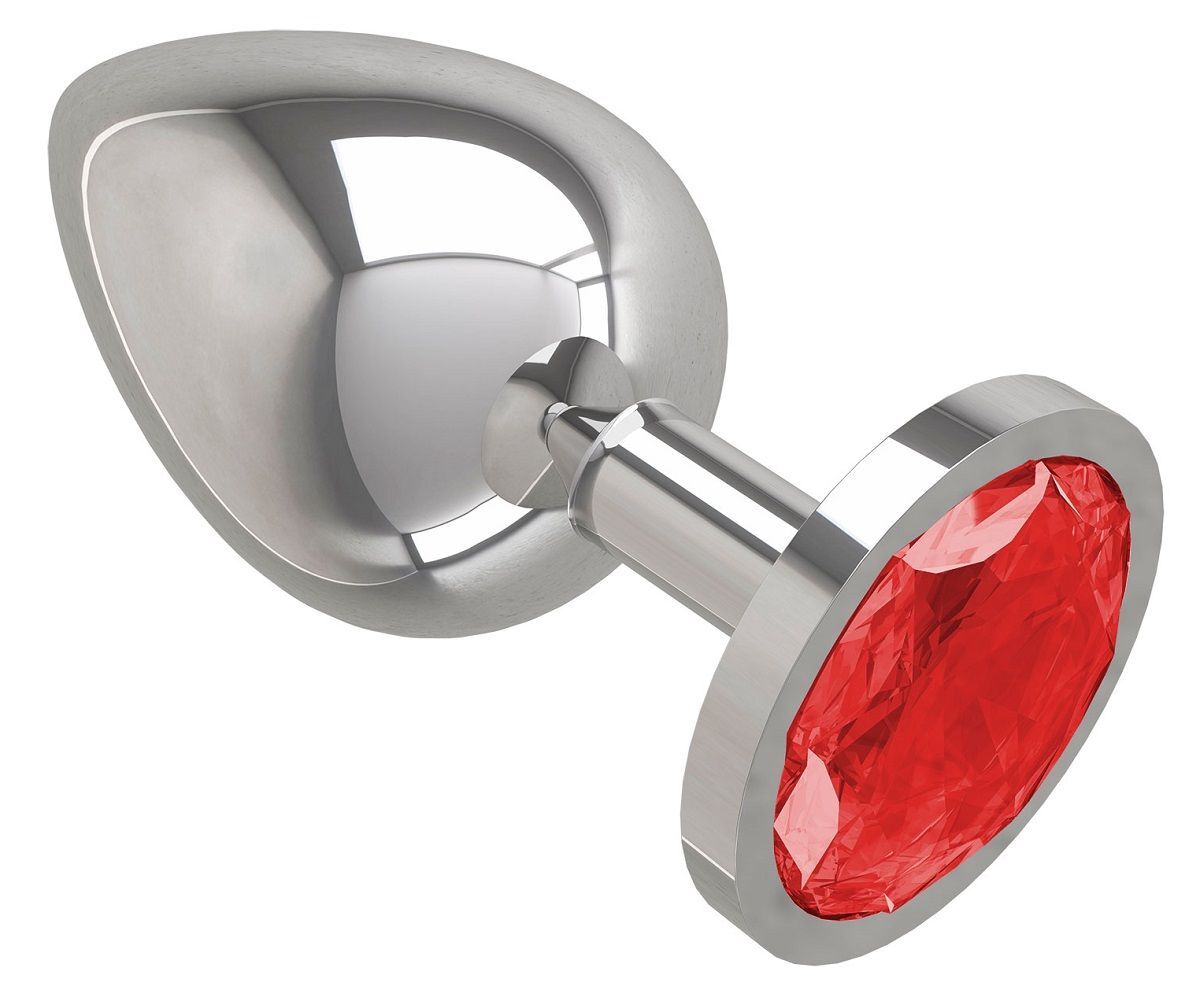 Серебристая большая анальная пробка с красным кристаллом - 9,5 см.