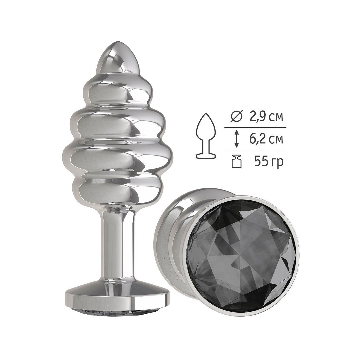Серебристая пробка с рёбрышками и чёрным кристаллом - 7 см.