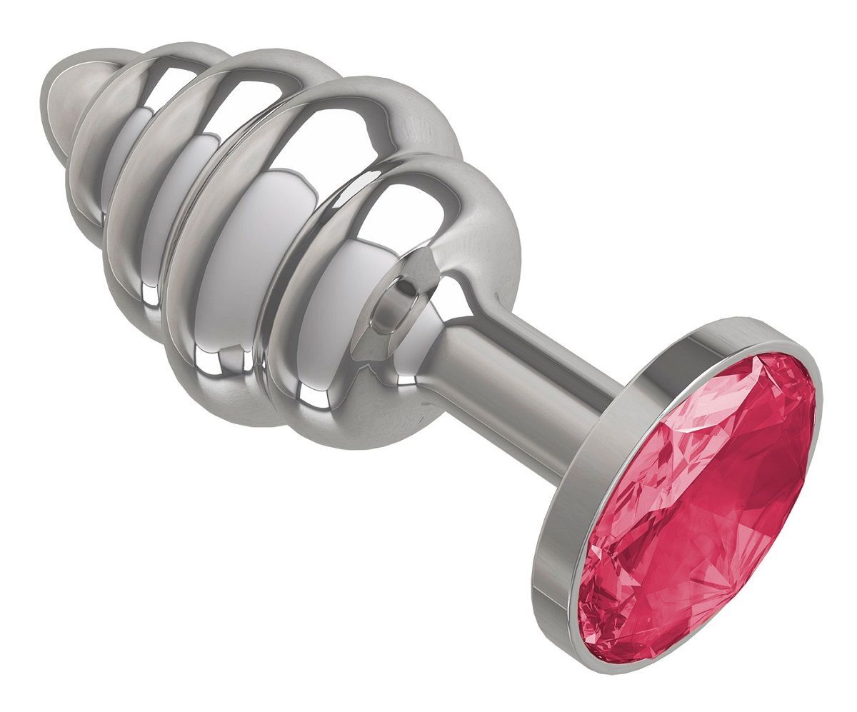 Серебристая пробка с рёбрышками и малиновым кристаллом - 7 см.