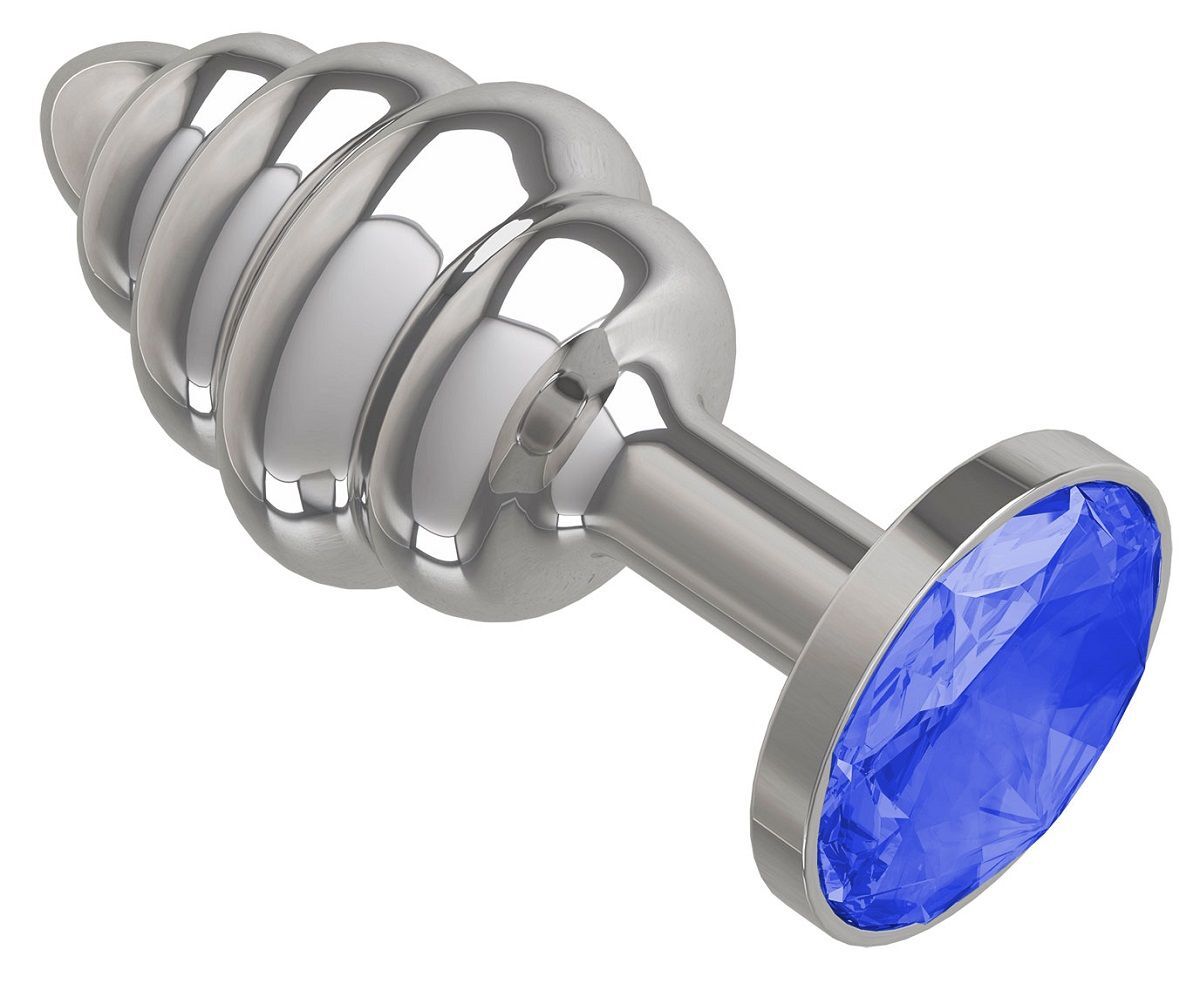 Серебристая пробка с рёбрышками и синим кристаллом - 7 см.