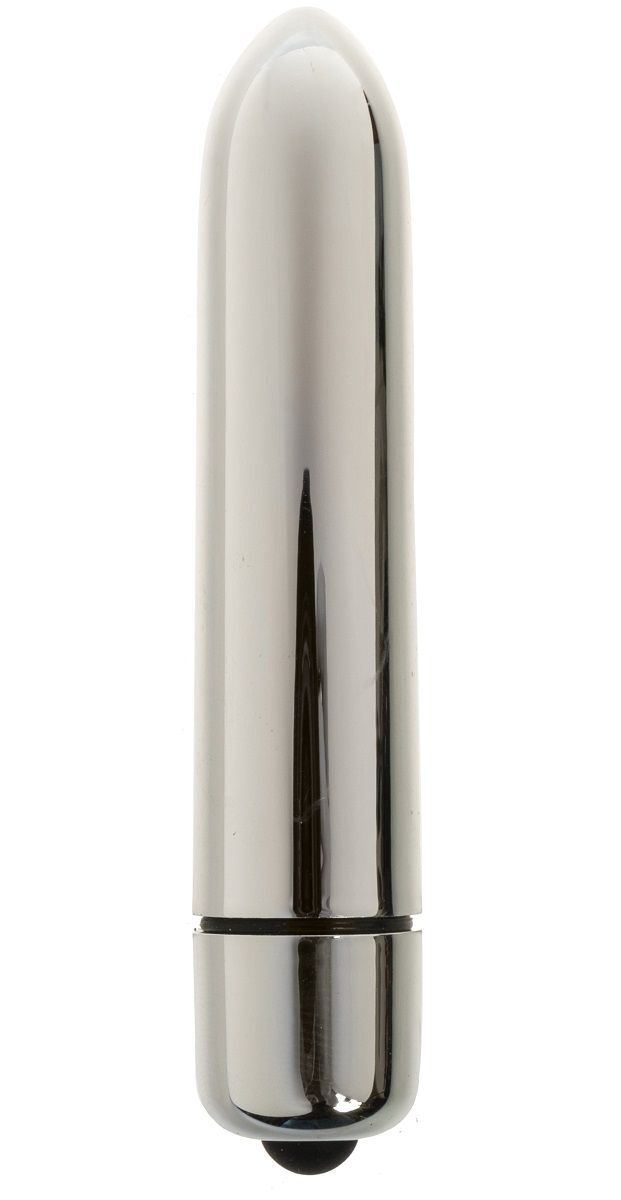 Серебристая вибропуля с заострённым кончиком - 9,3 см.