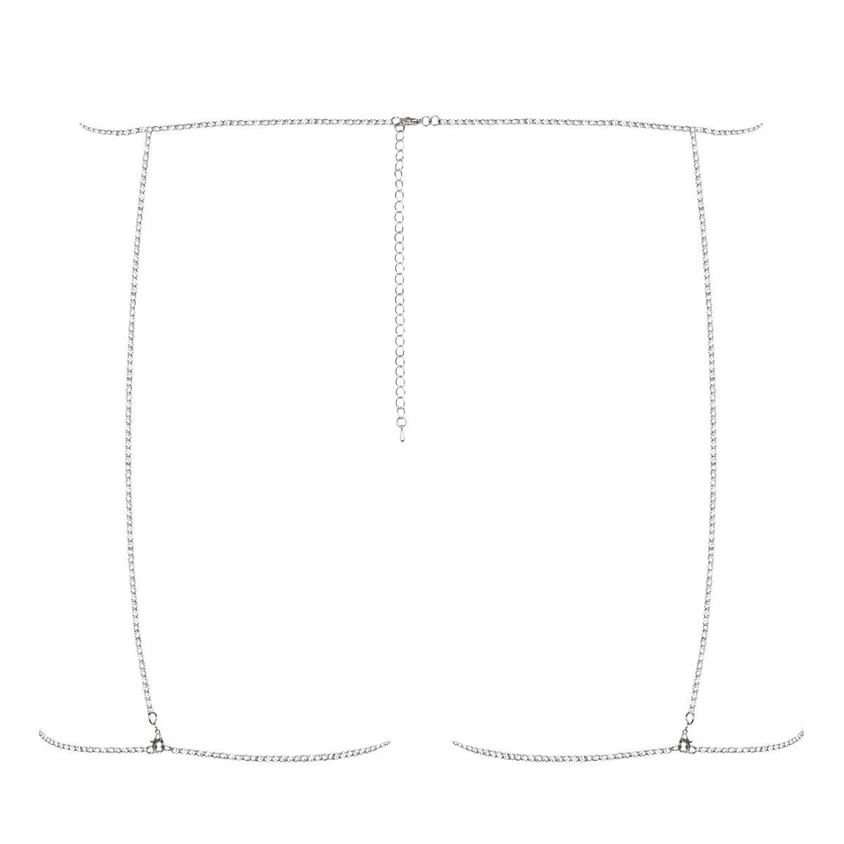 Уникальное и оригинальное украшение на бедро Bijou в виде серебряной цепочки со стразами.