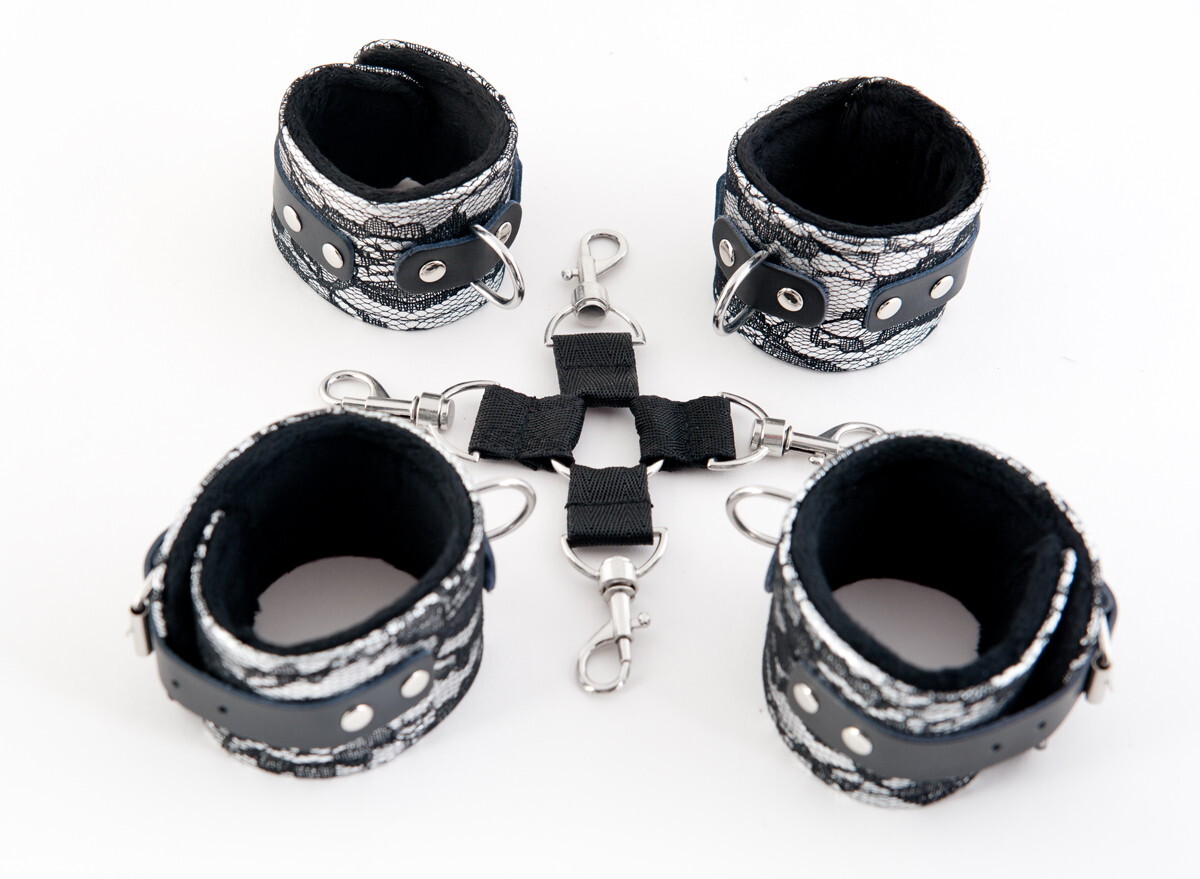 Серебро и кружево - роскошное сочетание, чтобы в любой ситуации чувствовать себя неотразимой. С этим комплектом ты обездвижена и находишься в полной власти своего господина.