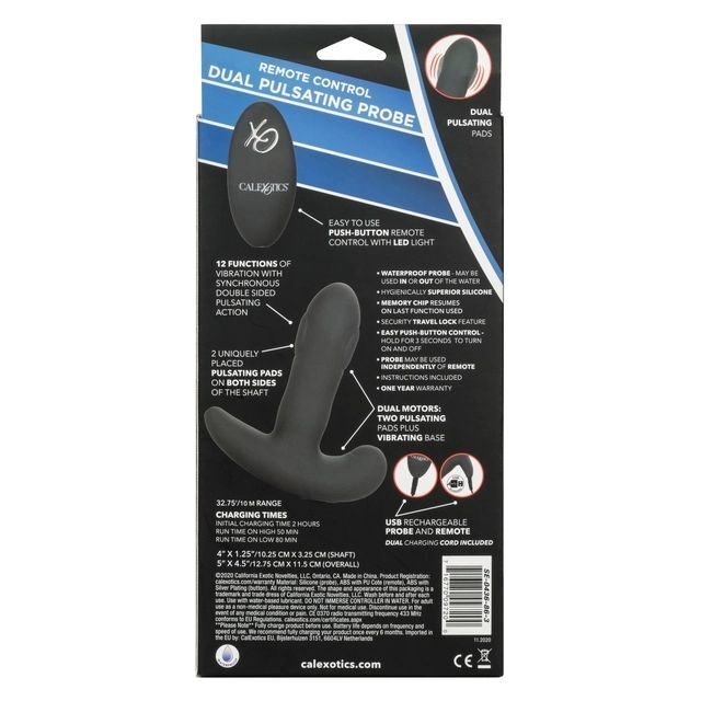 Eclipse Remote Control Dual Pulsating Probe – перезаряжаемое устройство для массажа простаты на дистанционном управлении и с вращающейся бусинкой на кончике с двух сторон стимулятора. Он изготовлен из гладкого литого гигиеничного силикона высшего качества, обеспечивающего удивительно приятные и гарнировано безопасные тактильные ощущения. Два мощных мотора анального стимулятора обеспечивает 12 вариантов равномерной глубокой вибрации и с функцию пульсирующего воздействия с двух сторон! Рабочая длина - 10,25 см.