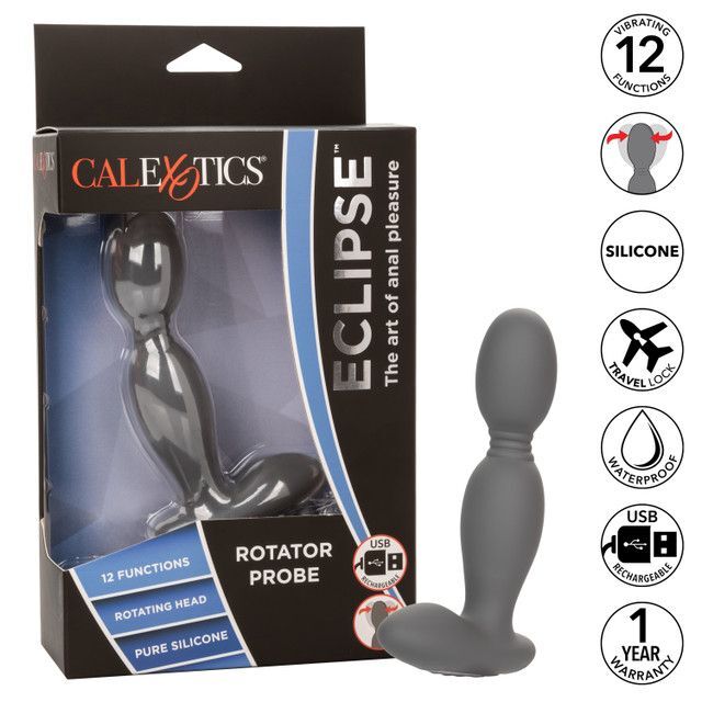 Вибромассажер Rotator Probe – инновационное бесшовное специализированное устройство с идеальной контурной анатомической формой и ротацией кончика стимулятора для правильного и качественного массажа простаты. Он изготовлен из гладкого литого гигиеничного силикона высшего качества, обеспечивающего удивительно приятные и гарантированно безопасные тактильные ощущения. Прибор разработан с учетом строения мочеполовой системы у мужчин. Массажер оснащен 12 функциями вибрации и ротации. Он имеет изогнутое основание, что не только не дает ему провалиться внутрь, но и позволяет носить ее внутри тела и использовать во время полового акта. Стимулятор снабжен высокотехнологичным чипом памяти, который позволяет запомнить последний режим выбранной вибрации и ротации и включается именно с него, не требуя снова искать предпочитаемую функцию. Совершенный инструмент для улучшения кровоснабжения, уменьшения застойных явлений, профилактики многих заболеваний половой сферы, улучшения эрекции, повышения либидо, получения удовольствия и новых ощущений. Вибромассажер оснащен анатомически изогнутым основанием, что не дает ему провалиться внутрь прямой кишки, а также делает устройство удобным для ношения или во время полового акта. Устройство необходимо вводить аккуратно, выпуклая часть должна быть направлена вверх. Такое положение устройства обеспечит наилучший эффект. Его можно использовать в душе и ванне. Для активации/дезактивации нажмите кнопку на ограничителе и удерживайте 3 секунды. Пробка заряжается через специальный аккумуляторный USB кабель и может быть подключен практически в любом месте. Просто подсоедините идущий в комплекте шнур к изделию и совместимому порту компьютера или USB-адаптера (приобретается отдельно). Полная зарядка занимает 60 минут, ее достаточно для беспрерывной работы в течение 60 минут. Рабочая длина - 10,25 см.