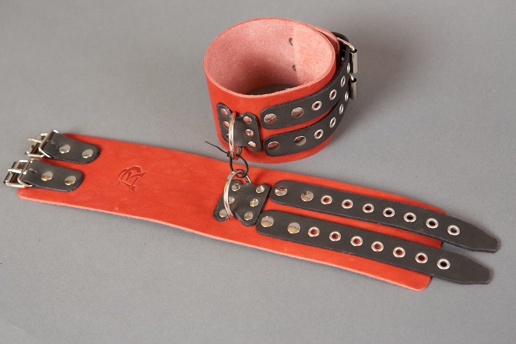 Широкие поножи ручной работы — это Ваш помощник в реализации самых необузданных БДСМ фантазий. Они не нарушают кровообращение, просты в применении и обеспечивают надежную фиксацию. Данная модель изготовлена из натуральной кожи черного и красного цвета. Специальная выделка обеспечивает жесткую фиксацию. Удобная ремневая регулировка размера и D-образные кольца и мягкая подкладка(пена) обеспечивает комфорт и безопасность. Ширина - 7 см. Минимальный обхват ноги у щиколотки - 24 см, максимальный - 33 см.