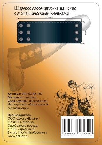 Универсальный хомут-утяжка для мошонки и пениса на заклепках, выполненный из качественной искусственной кожи. Данный хомут позволяет оттянуть яички вниз, тем самым усиливая оргазм, либо утянуть пенис для более мощной эрекции. Ширина - 6 см.