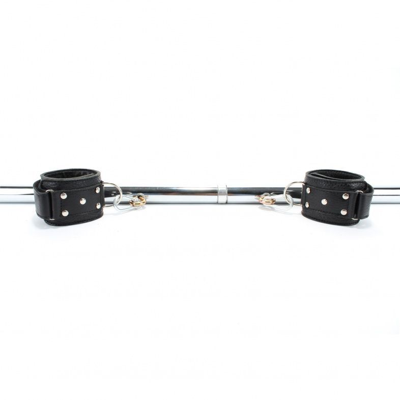 Металлическая штанга серебристго цвета. По всей длине на одинаковом расстоянии друг от друга расположены крепления для рук и ног в виде оков. Оковы изготовлены из кожи, украшены заклепками. Размер регулируется при помощи застежек-липучек. Оковы крепятся к штанге при помощи карабинов. Ширина оков - 5 см.