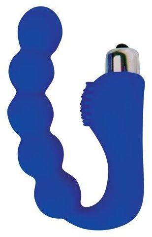 Синий силиконовый анальный вибромассажер-елочка