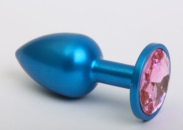 Синяя анальная пробка с розовым кристаллом - 8,2 см.