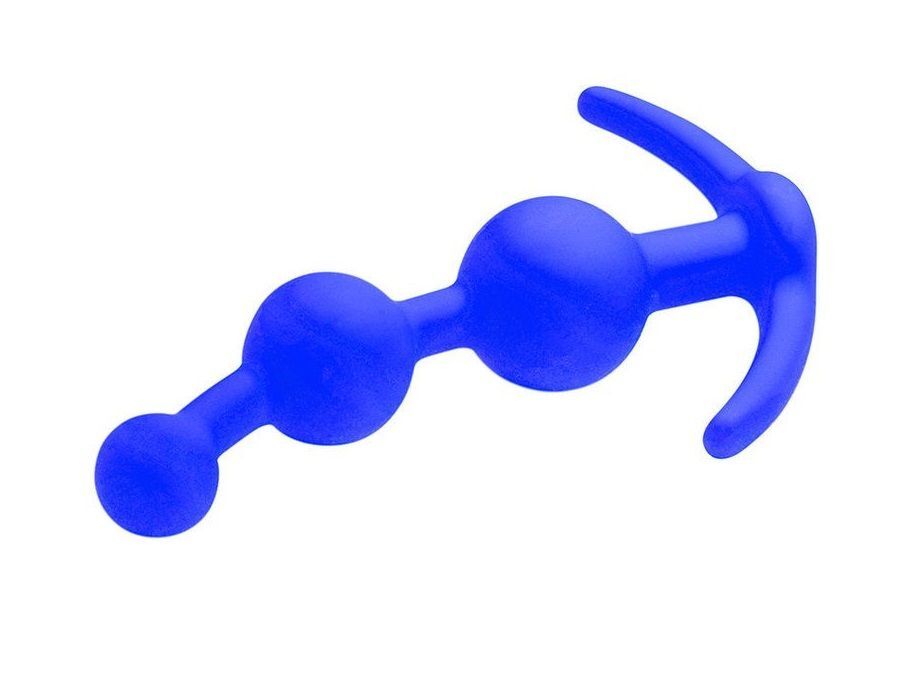 Синяя анальная цепочка из 3 звеньев - 13 см.