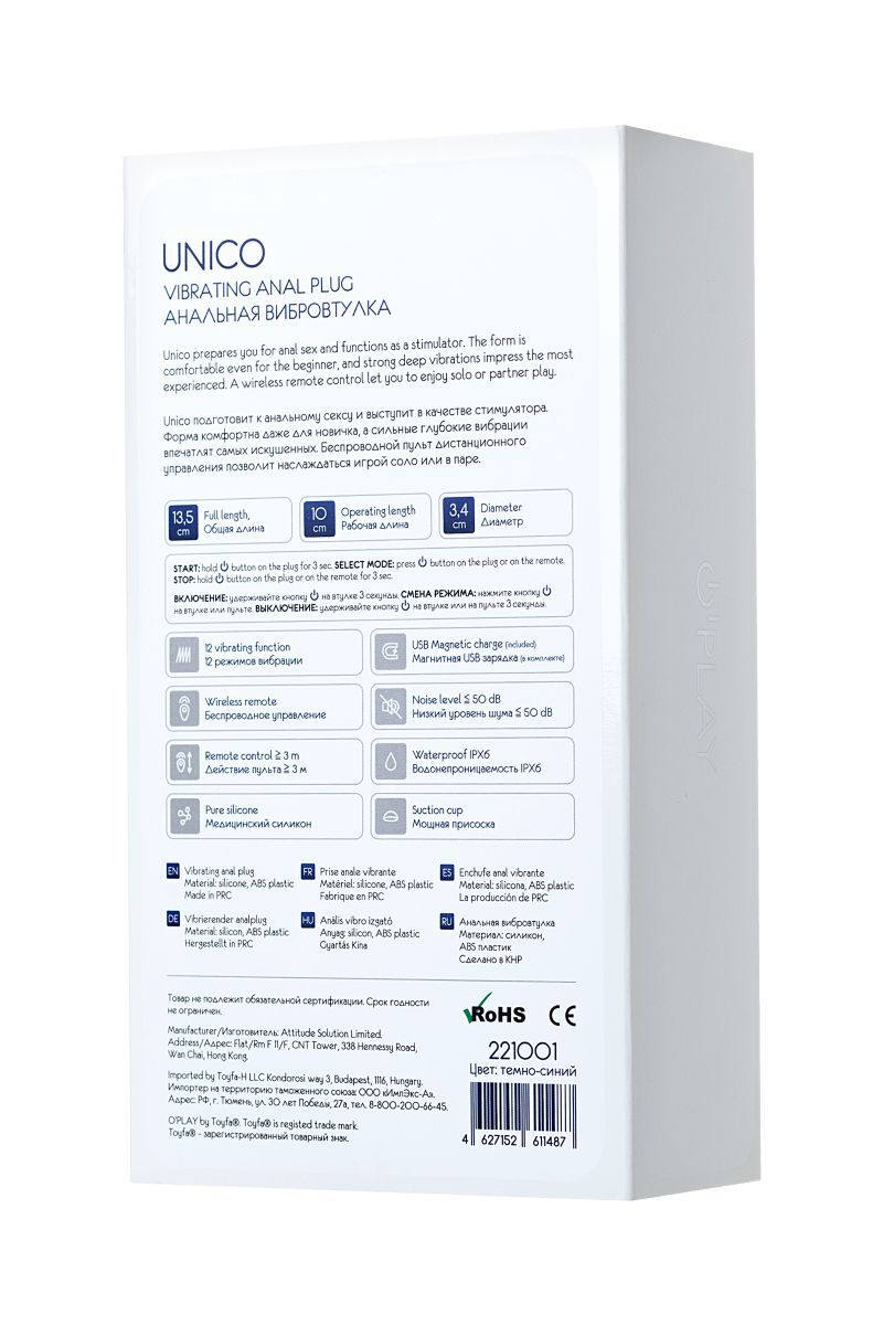 Unico подготовит к анальному сексу и выступит в качестве стимулятора. Форма комфортна даже для новичка, а сильные глубокие вибрации впечатлят самых искушенных. Беспроводной пульт дистанционного управления позволит наслаждаться игрой соло или в паре. 12 режимов вибрации. Беспроводное дистанционное управление на расстоянии до 3 метров. Медицинский силикон. Магнитная USB зарядка (в комплекте). Низкий уровень шума (не более 50 dB). Водонепроницаемость IPX6. Мощная присоска. Минимальный диаметр - 1 см.