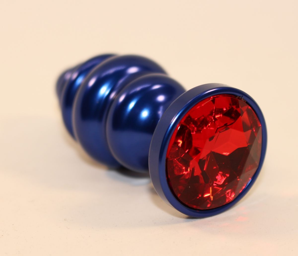 Синяя рифлёная пробка с красным кристаллом - 7,3 см.