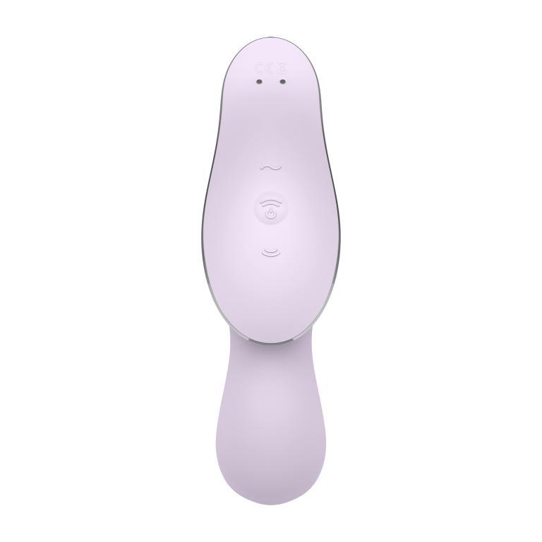 Satisfyer Curvy Trinity 2 - двойной вибростимулятор тройного назначения. Он стимулирует вакуумными волнами клитор, при этом противоположный конец приятно вибрирует, стимулируя всю зону вульвы. Также его можно отдельно использовать для стимуляции точки G. Многофункциональный вибростимулятор выполнен из безопасного силикона, полностью водонепроницаем. Количество режимов вибрации - 12, 11 скоростей вакуумной стимуляции. Управление моторами раздельное. Магнитная USB-зарядка в комплекте. Рабочая длина - 7,5 см. Время зарядки - 3 часа. Время работы - 1 час.
