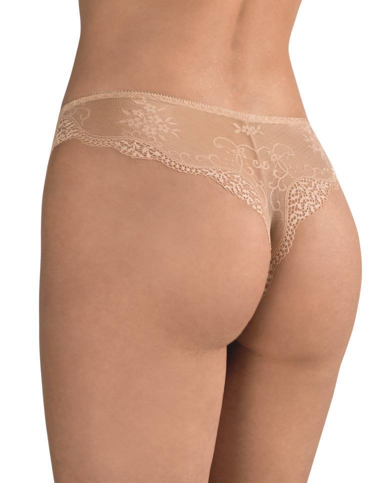 Трусики-бразилиана из эластичного мягкого жаккарда с цветочным рисунком и кружева, спинка кружевная, ластовица из 100% хлопка.