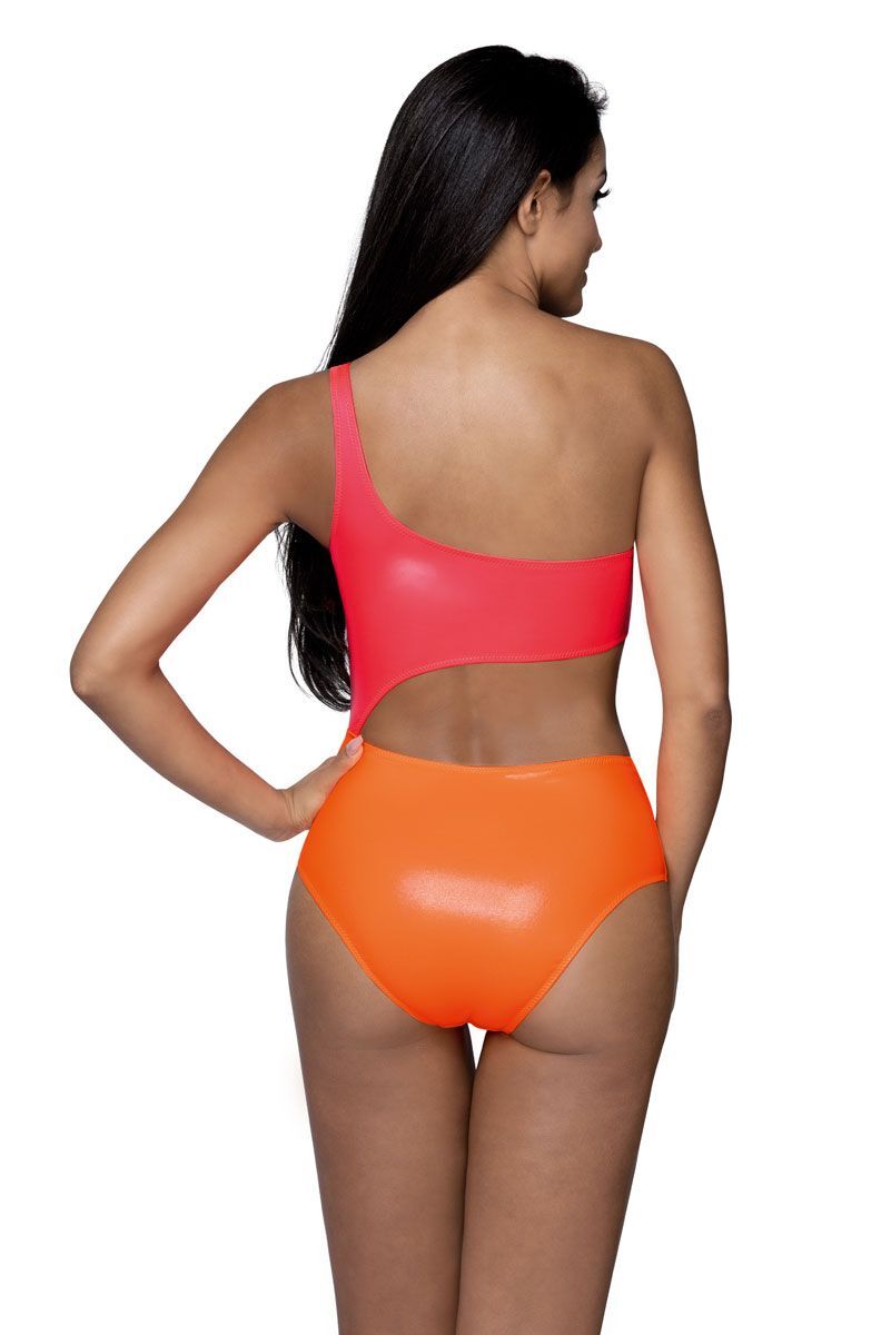 Совместный купальник из искусственного латекса сложного кроя, с мягким лифом и бретелью на одно плечо. Внимание: европейские размеры! См. размерную сетку производителя.