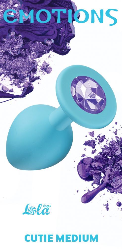 Средняя голубая анальная пробка Emotions Cutie Medium с фиолетовым кристаллом - 8,5 см.