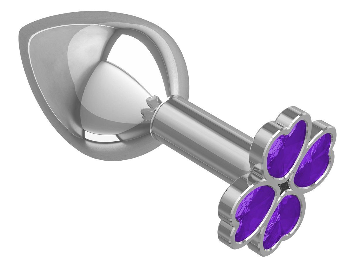 Средняя серебристая анальная втулка с клевером из фиолетовых кристаллов - 8,5 см.