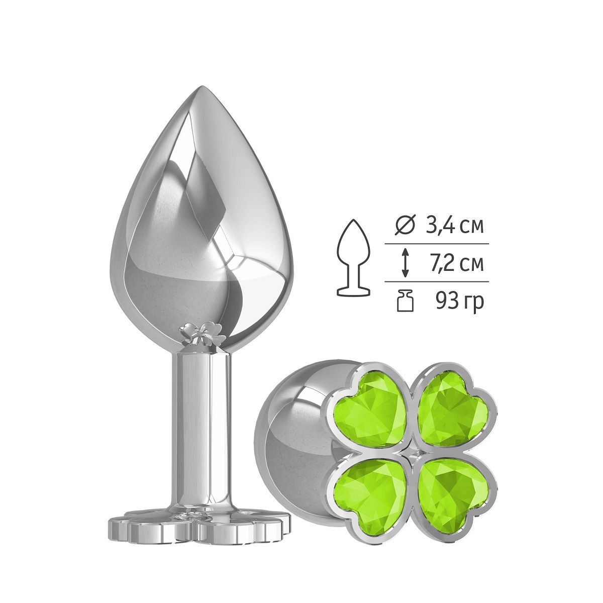 Средняя серебристая анальная втулка с клевером из лаймовых кристаллов - 8,5 см.