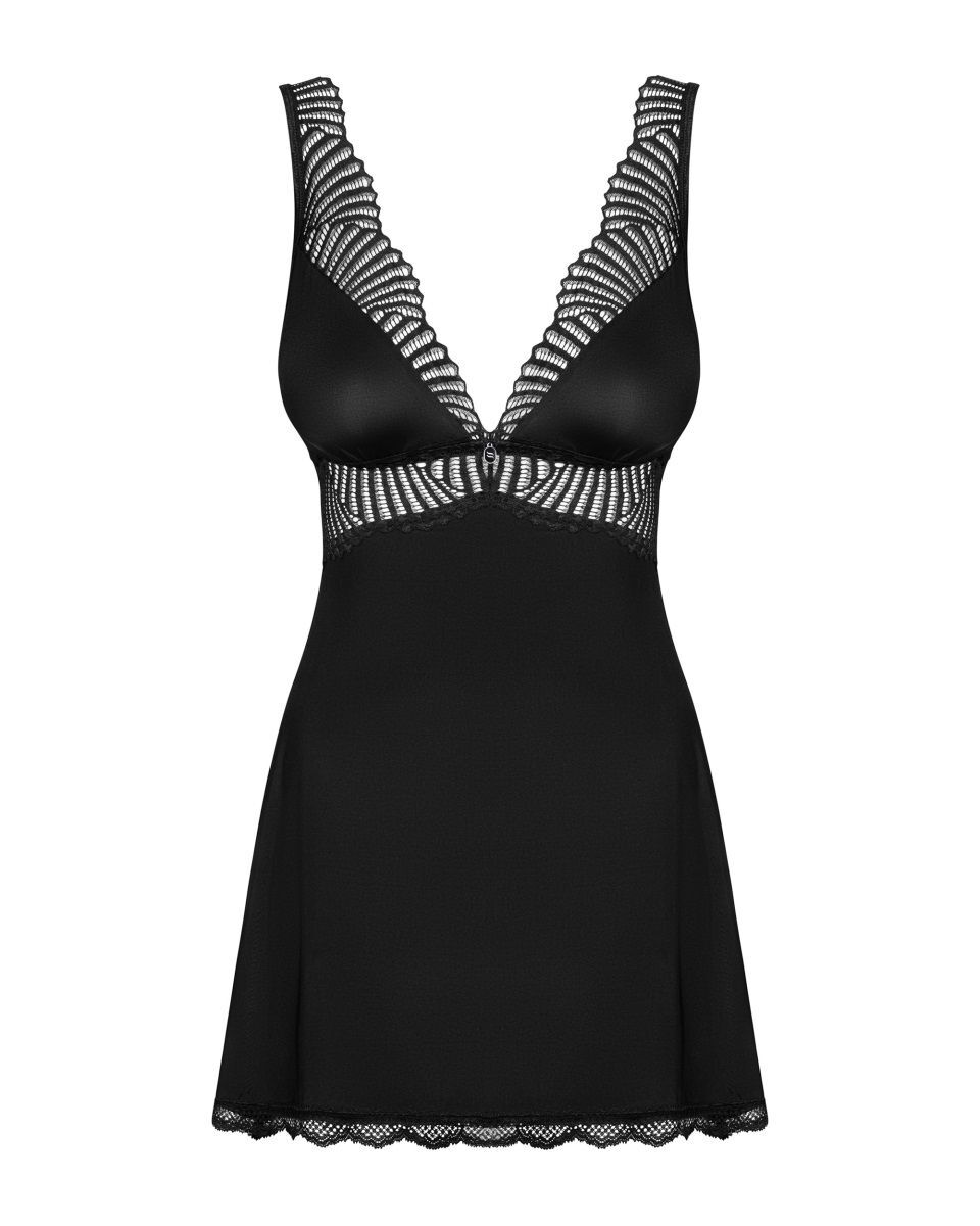 Очаровательная сорочка из коллекции Klarita. Полотно сорочки из эластичной ткани, лиф мягкий, с кружевом, под лифом орнаментное кружево, тонкие бретельки регулируются по длине, на спине застёжка. В комплекте: сорочка, трусики.