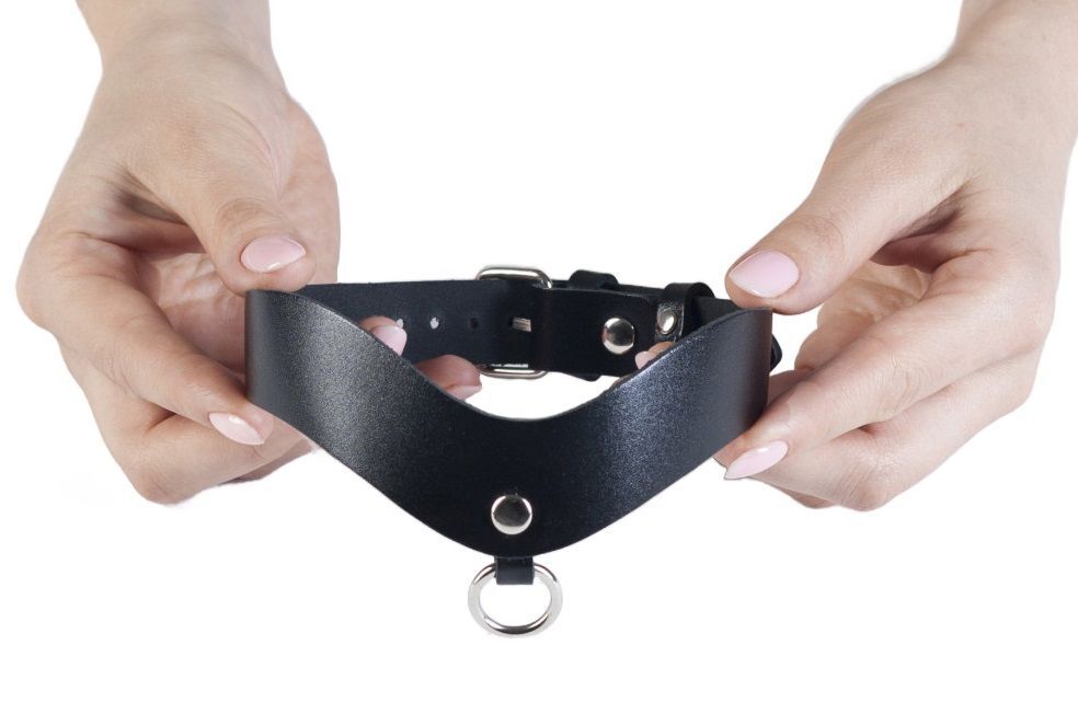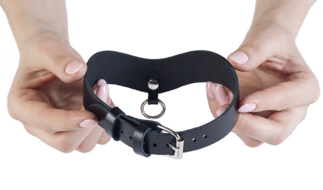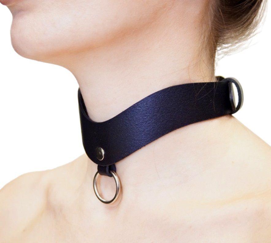 Ошейник стильной формы, представляет собой единый отрез натуральной кожи с металлическим кольцом для поводка в центре. Особенности: - черная натуральная кожа (1.8-2 мм), 1 слой - единый отрез кожи без лишних соединений - удобная и анатомически продуманная форма позволяет носить его продолжительное время - выглядит необычно и стильно, можно использовать как стильный аксессуар - никелированная металлическая фурнитура - кольцо для крепления поводка - обхват от 33 до 39 см.