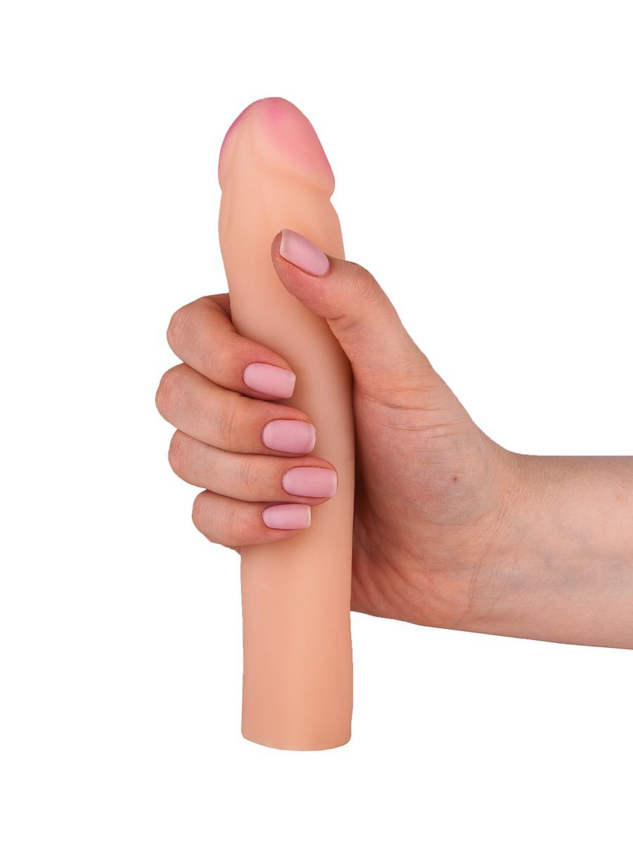 Насадка-удлинитель на пенис обеспечивает увеличение размера как в длину, так и в толщину. Сделана из полимера, создающего имитацию мягкой, шелковистой «кожи» с ощущениями реального фаллоса при интимном контакте. Насадка удлиняет время близости. Внутренний диаметр - 3 см.
