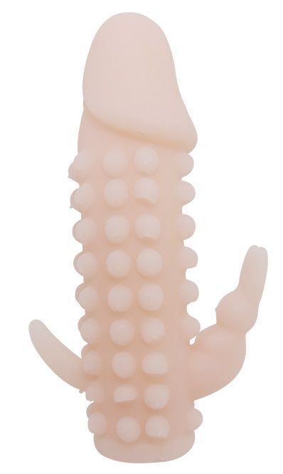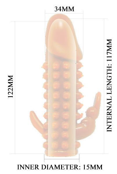 Насадка на пенис со стимулятором клитора. Изготовлена из мягкого материала, похожего на человеческую кожу. Длина полости - 11,7 см, диаметр - 1,5 см.