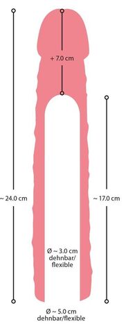 Особенность Extension Sleeve от Nature Skin в том, что эта насадка создает ощущение натуральной кожи. Благодаря мягкому термопластичному эластомеру и реалистичному рельефу, вы сможете насладится невероятной игрой. Насадка увеличивает длину полового члена на 7 см и прибавляет 2 см в толщине. А также плотно прилегает к коже и обеспечивает длительную эрекцию. Длина полости - 17 см., диаметр - 3 см.