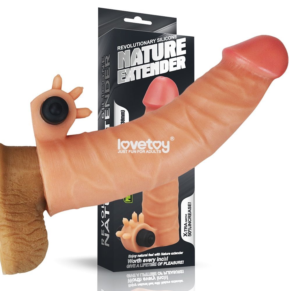 Телесная насадка-удлинитель на пенис с вибропулей - 17,8 см.