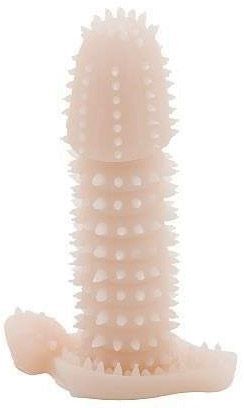 Насадка на пенис. Покрыта пупырышками, стимулирующих вагину. Есть дополнительный стимулятор для клитора. Очень мягкий, приятный на ощупь. Внутренний диаметр - 2 см.