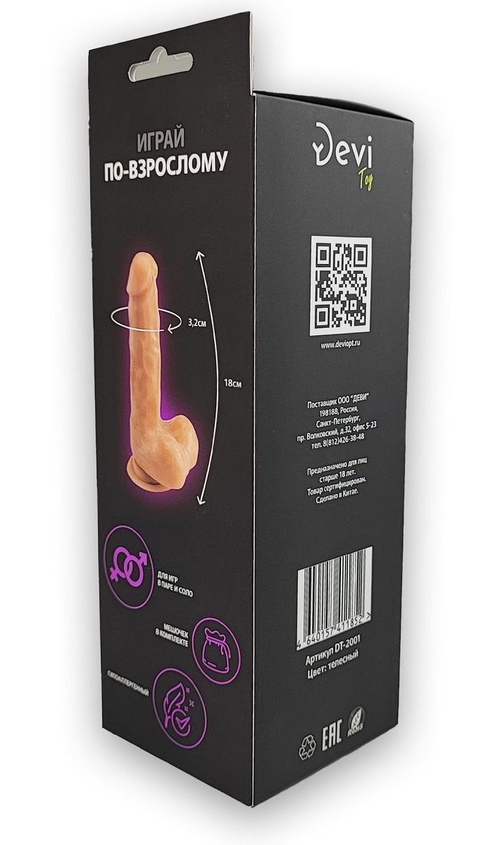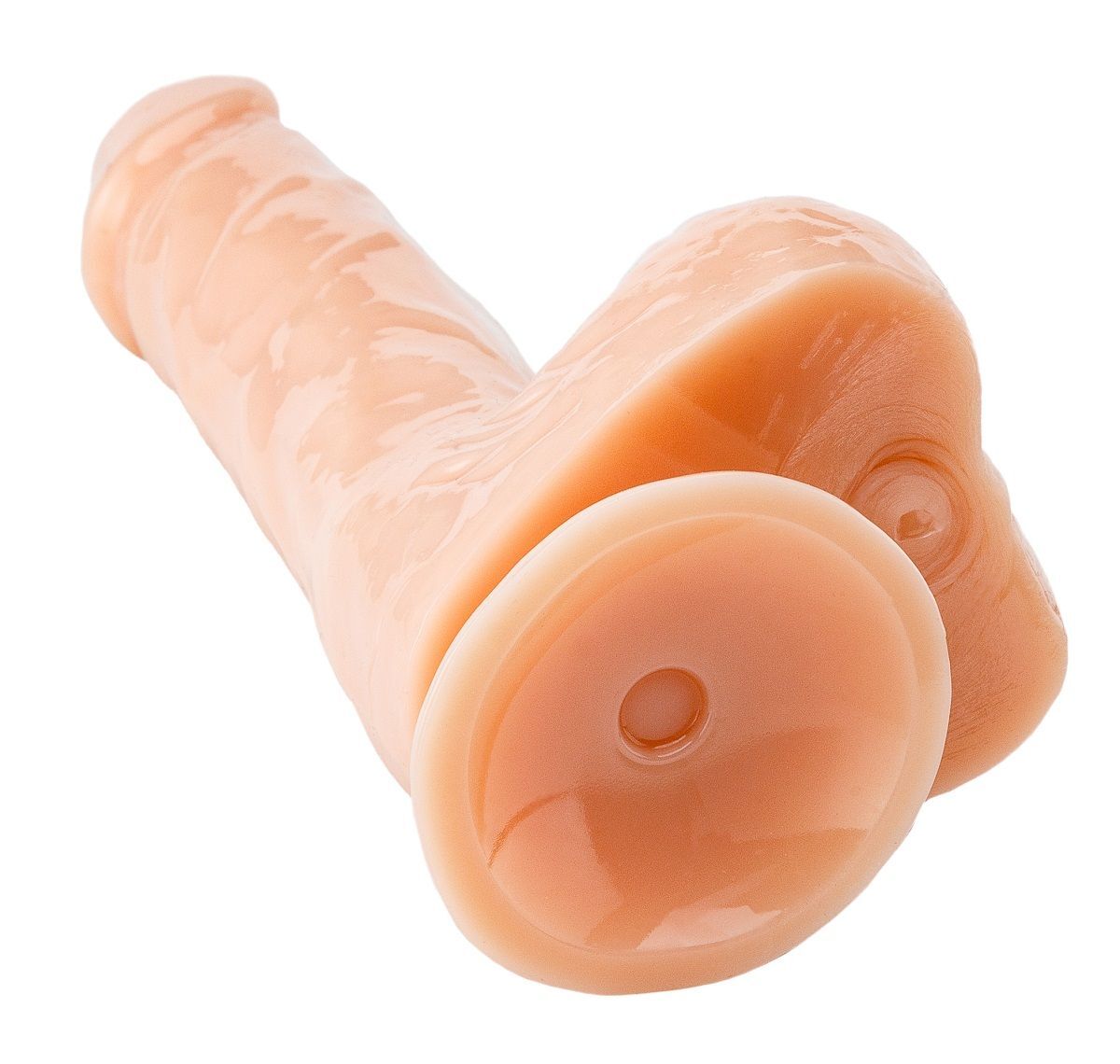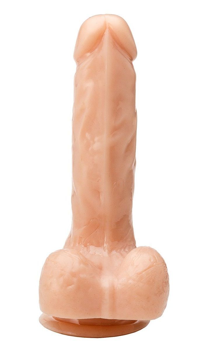 Телесный реалистичный фаллоимитатор на присоске для фиксации на плоскости. Имеет богатый рельеф поверхности. В комплекте мешочек для бережного хранения.