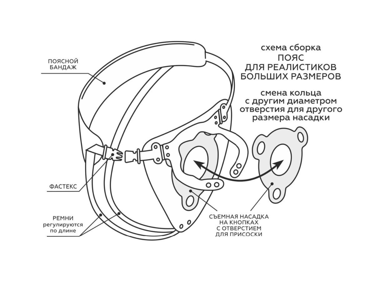 Изделия большого размера пользуются все большей популярностью. Их применяют для фистинга, сексуальной атрибутики, эротических игр, сувениров и т.д. Нами разработан пояс для таких размеров с «солидным» весом. Прочный, с бандажом, фастексами, возможностью точной регулировки под любой размер. В галерее, на нашем сайте есть схема сборки и фиксации. Присоска, соприкасаясь с телом, способна амортизировать нагрузки и даже присасываться к телу, дополнительно фиксируя изделие. К поясу прилагается съемное кольцо на кнопках, благодаря чему пояс становится универсальным под любой размер присоски. Учитывая, что хомутик на корпус изделия так же имеет кнопки для изменения диаметра, то такой пояс можно использовать в очень широком диапазоне размеров. Многослойная кожа, заклепки обеспечат длительную эксплуатацию и прочность даже при использовании в качестве атрибутики БДСМ. Рабочая длина - 25 см.