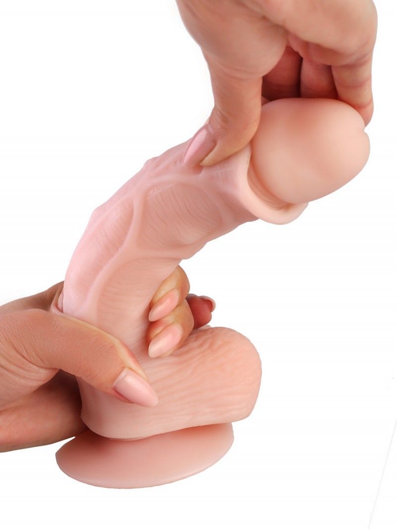 Реалистичный фаллос с хребтом из киберкожи, мошонкой и подвижной крайней плотью с нежной и приятной на ощупь материалом создан для плотской любви и неземного наслаждения. Благодаря присоске, его можно зафиксировать на любой ровной и плоской поверхности. Отличительной особенностью этого фаллоимитатора является гибкий хребет, который позволяет принимать различные формы, рельефный рисунок на всей поверхности и максимальная реалистичность кожи. Присоска фаллоимитатора позволит освободить руки, а ярко выраженная мошонка будет дополнительно стимулировать эрогенные зоны вокруг половых органов. Рабочая длина - 18 см.