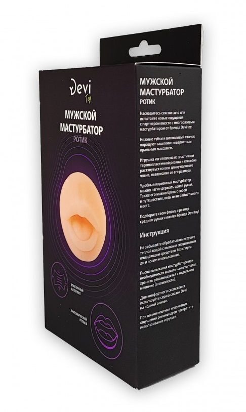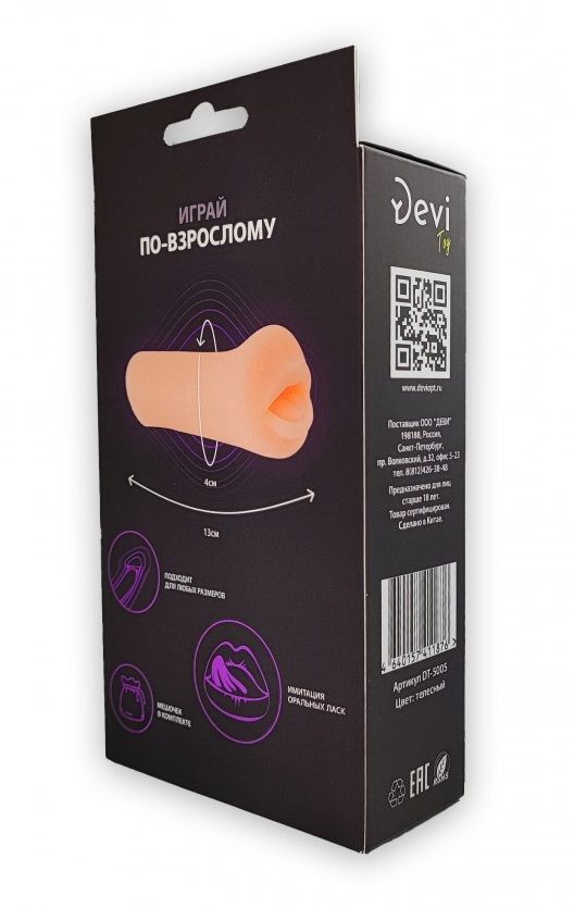 Телесный реалистичный мастурбатор-ротик. Нежный и ненасытный. Анатомический рельеф. В комплекте мешочек для бережного хранения игрушки.