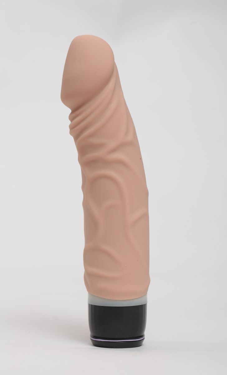 Вибромассажёр имеет форму члена. Необычайно приятный, рельефный, выполненный из высококачественного силикона , передающий эффект мягкой реалистичной текстуры кожи, не имеет швов. Виброэлемент расположен по всей длине изделия. Вариации вибрации регулируются при помощи кнопки, расположенной в основании.