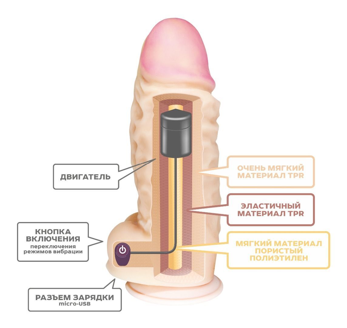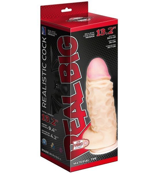 Супергигант с вибратором на присоске. Встроенный литий-ионный аккумулятор, заряжаемый от USB разъема. Сделан акцент на максимальное подобие человеческому фаллосу. 12-скоростной механизм управления вибрацией с внутренним заряжаемым аккумулятором. Изделие обладает гибкостью и упругостью, приближено по тактильным ощущениям к биологическому прототипу. Вибрационный механизм находится внутри упругого корпуса, который в свою очередь покрыт сверхмягкой оболочкой. Использована технология нанесения сверхмягкого материала на эластичный, полужесткий каркас. Подобрано оптимальное соотношение упругости, мягкости, тактильных ощущений – словом всего того, что напоминает биологический прототип, но очень больших размеров. Рабочая длина - 24 см. Диаметр головки - 9,6 см.