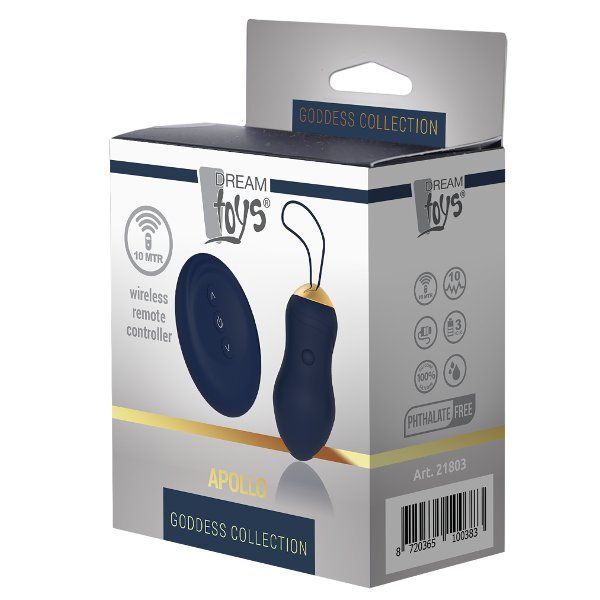 Apollo — это вибрирующее яйцо с дистанционным управлением. Отлично подходит для внутренней стимуляции благодаря простоте эксплуатации и прочной петле для легкого извлечения. Яйцо Apollo имеет утонченный вид благодаря гладкой форме, темно-синему силикону и деталям золотого цвета. Это яйцо удовольствия предлагает 7 ритмов вибрации на 3 скоростях. Вибрации можно легко регулировать с помощью кнопок со стрелками на пульте дистанционного управления, который имеет радиус действия 10 метров. И яйцо, и пульт дистанционного управления заряжаются с помощью прилагаемого USB-кабеля.