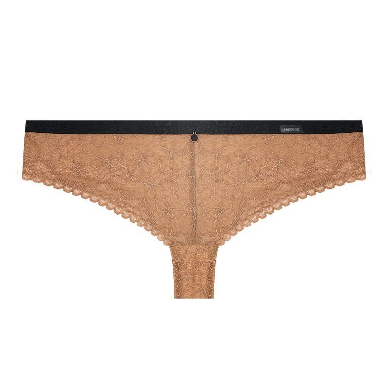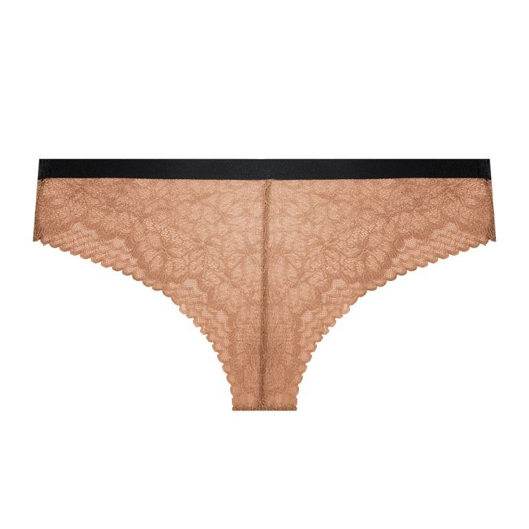 Трусики-бразилиана Elisabeth из кружевного полотна, спереди продублированы сеткой, резинка эластичная контрастного цвета. Ластовица проложена 100% хлопком .