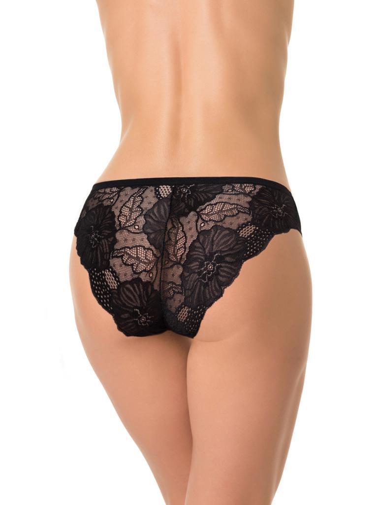 Трусы-бразилианы со средней линией талии. Передняя деталь выполнена из мягкого хлопка со спандексом. Задняя деталь из кружева с цветочным рисунком.