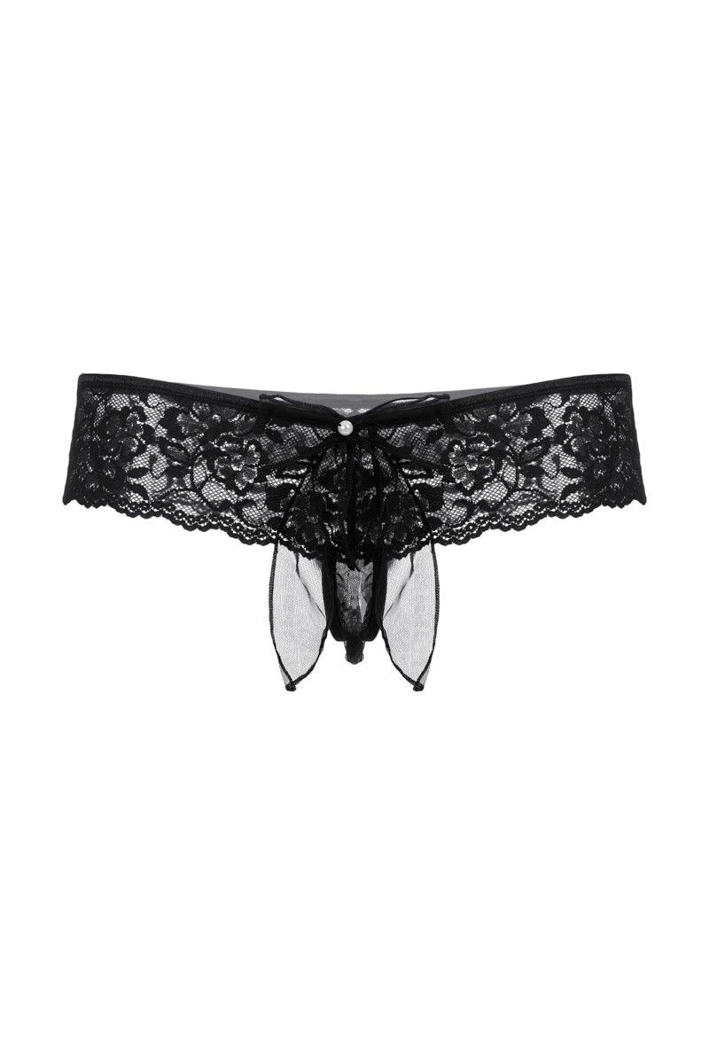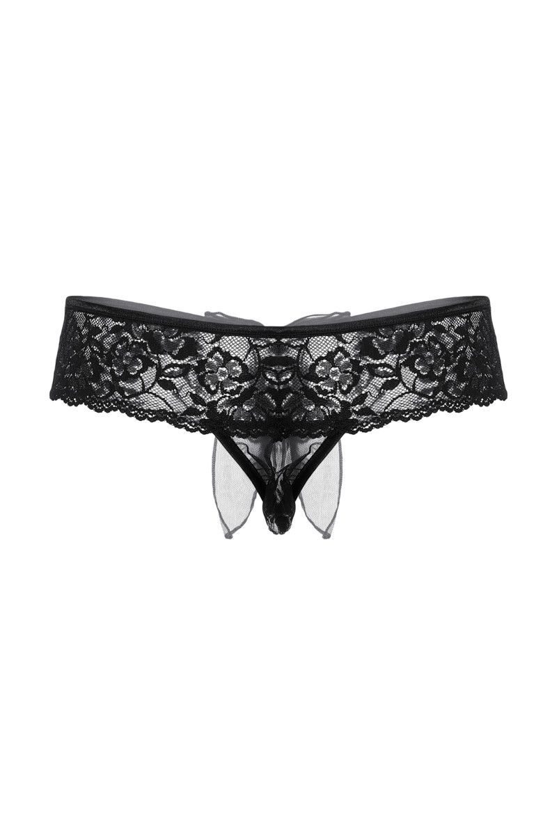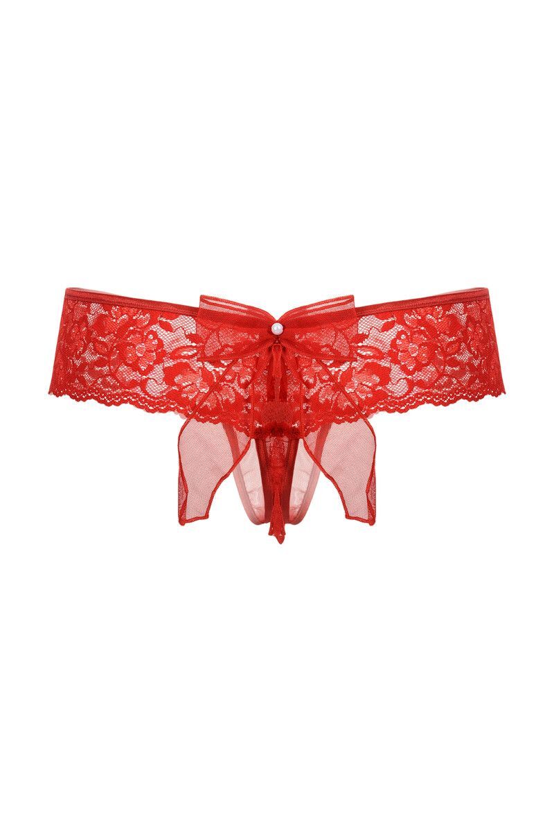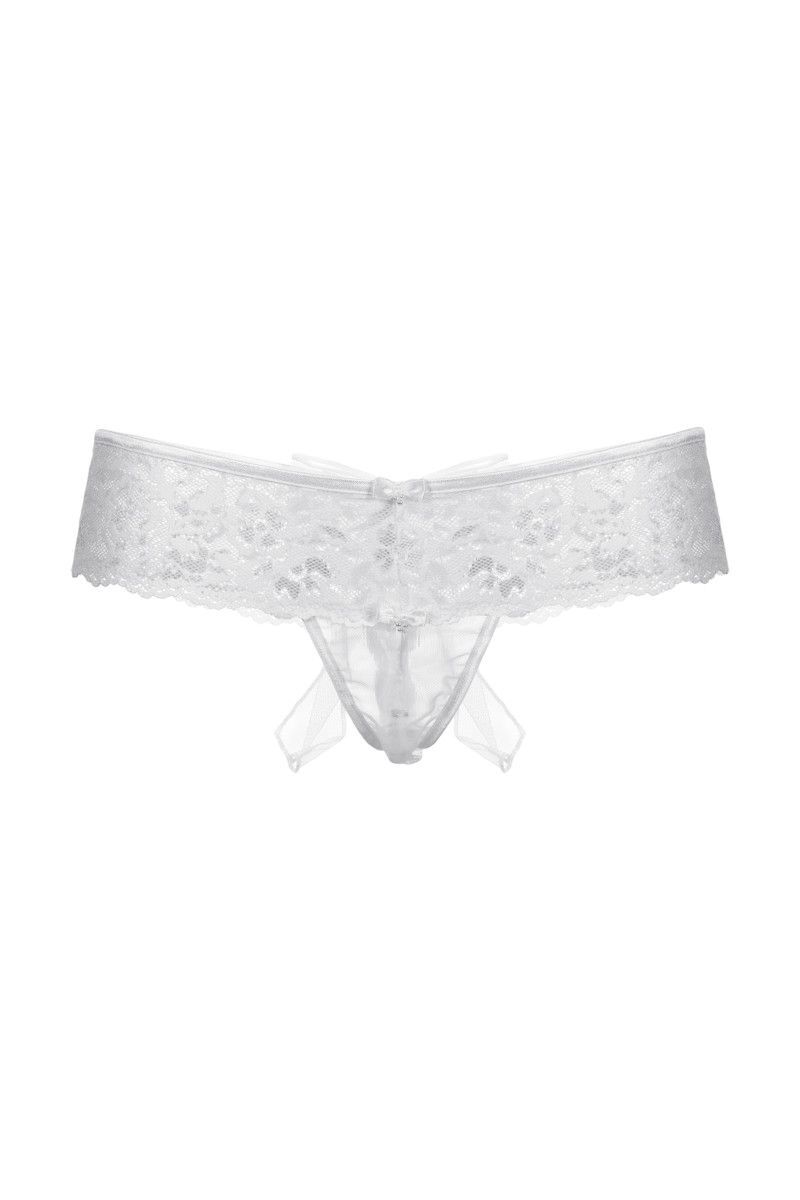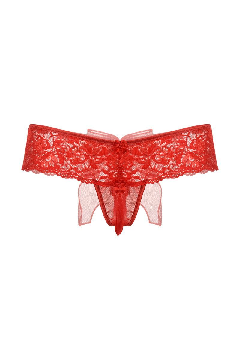 Когда страсть достигнет своего апогея, и любимый решит сорвать с вас трусики, поспешите предложить ему другой вариант - без порчи белья. Пикантный разрез на этих прелестных трусиках из нежного кружева с бантиком сзади – заветный доступ к лону. Прорываясь сквозь него всем своим естеством, мужчина доставит вам удовольствие - без промедления и каких-либо потерь!