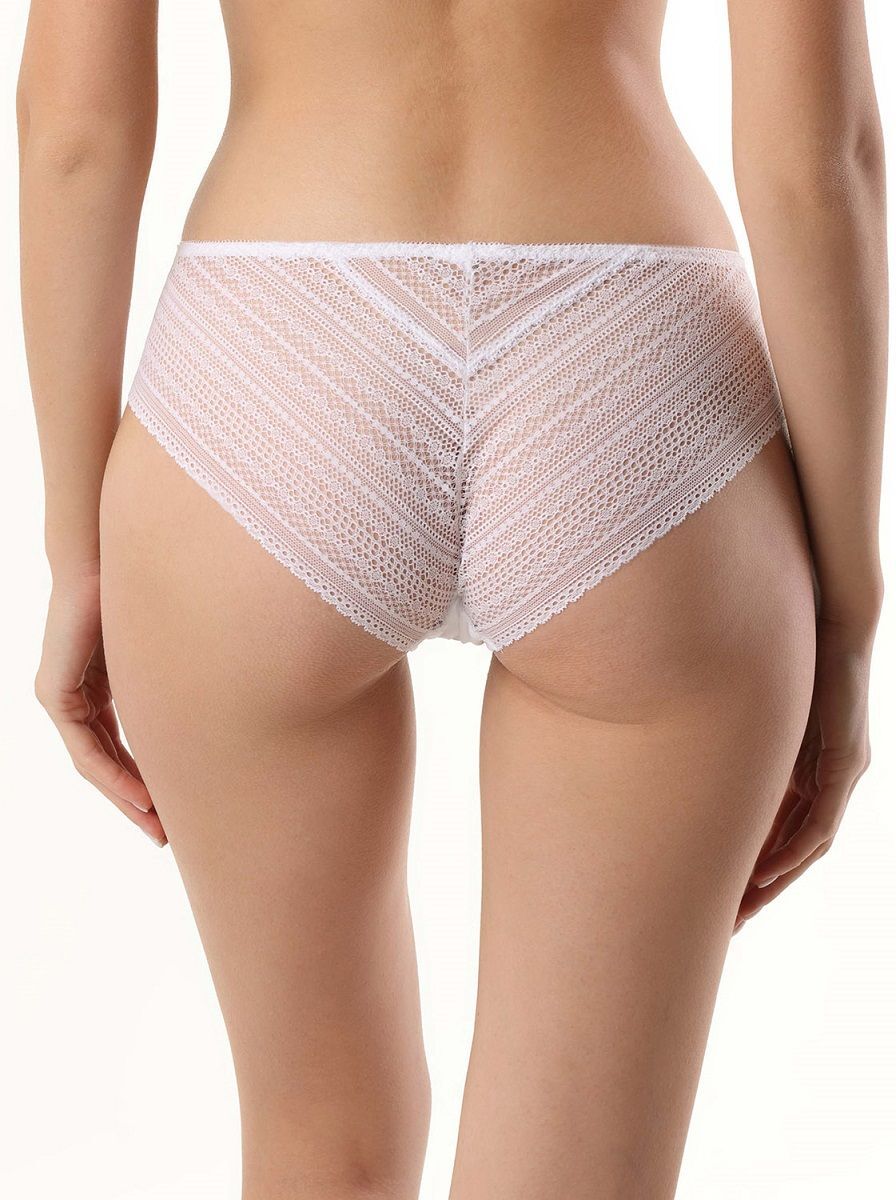 Трусы-слип со средней линией талии, выполнены из эластичного кружева с графическим рисунком, что делает их практически незаметными под одеждой.
