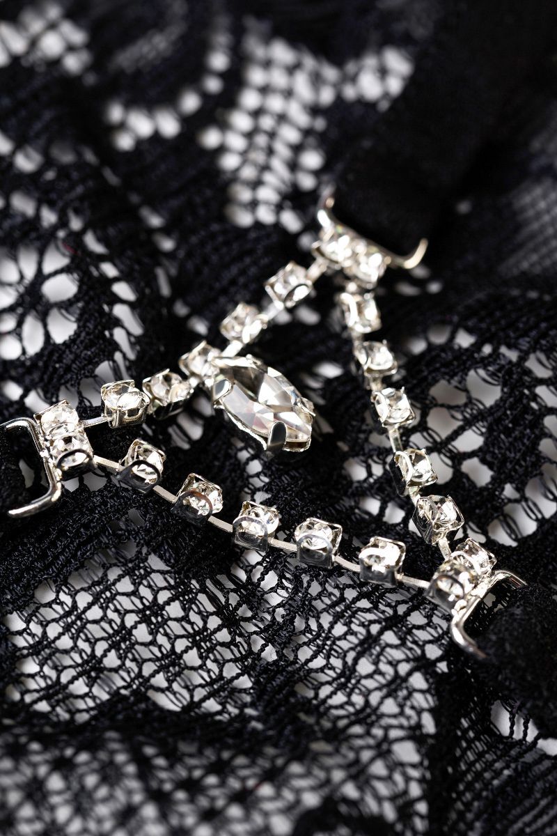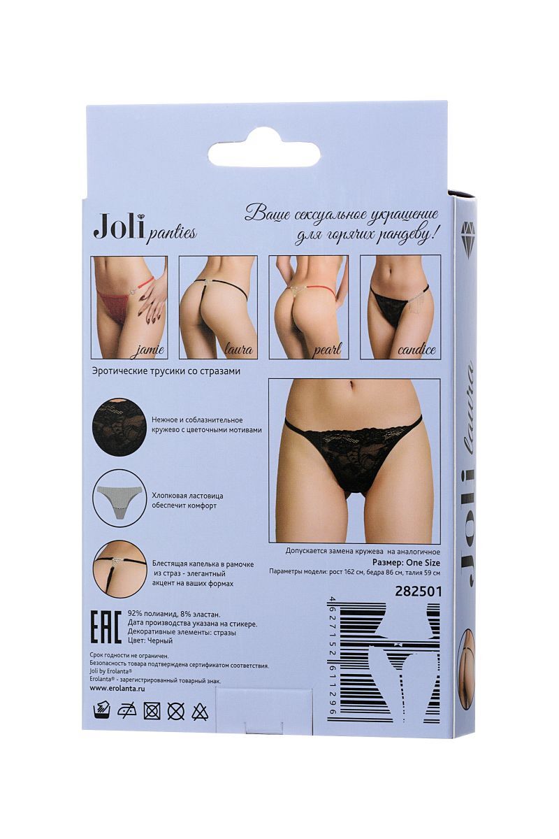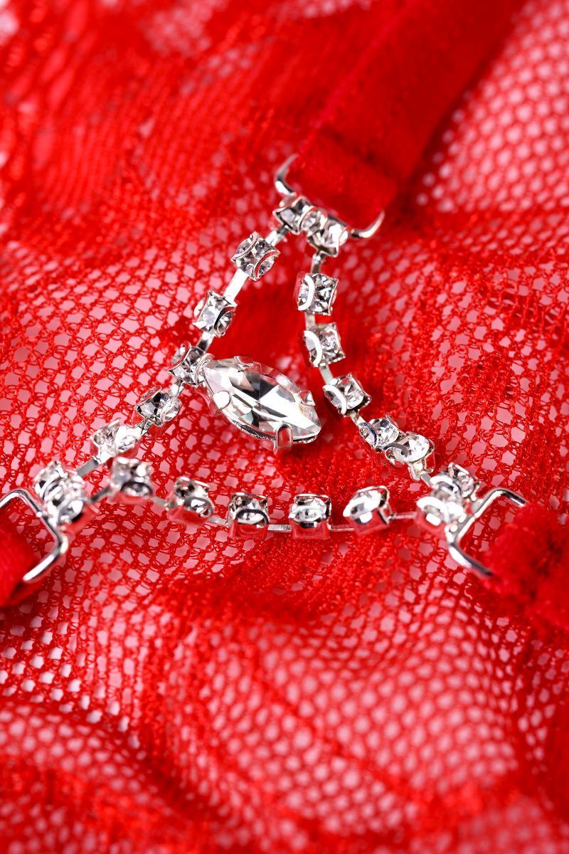 Нежные и соблазнительные кружевные цветы спереди. Мягкие лямки и хлопковая ластовица обеспечивают комфорт. Сзади капелька роскошного камня в рамочке из страз - королевская деталь сексуального образа.