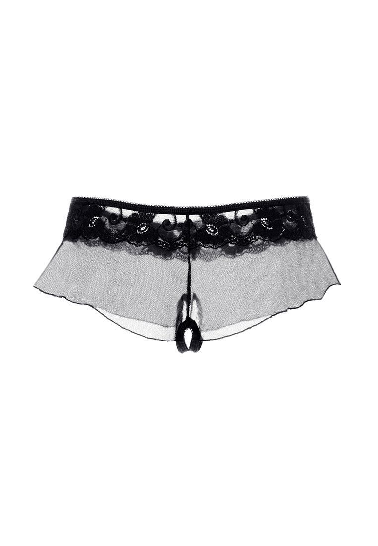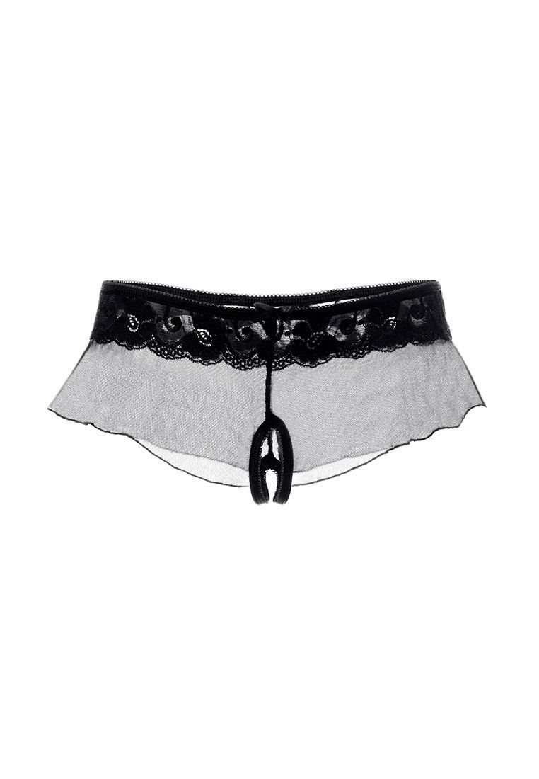Эротические трусики-юбочка из стрейч-сетки, с кружевной кокеткой и атласным бантиком спереди. Допускается замена кружева на аналогичное.
