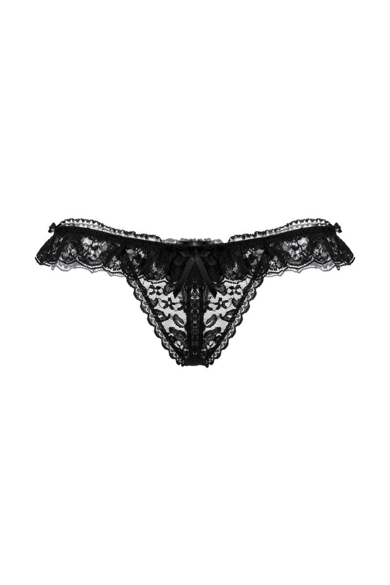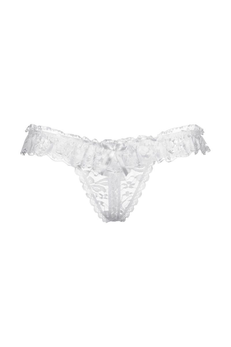 Эти трусики-стринг выдержат не одну сексуальную атаку вашего мужчины. А всё потому, что в них предусмотрен прямой доступ к вашим прелестям! Увидев вас в кружевном белье с оборками и мгновенно вспыхнув желанием, любимый сможет приступить к самым что ни на есть активным действиям по вашему удовлетворению.