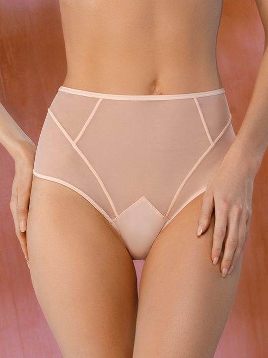 Трусы-бразилиана с высокой линией талии. Высота бочка 14 см. Выполнены из эластичной сетки и микрофибры.