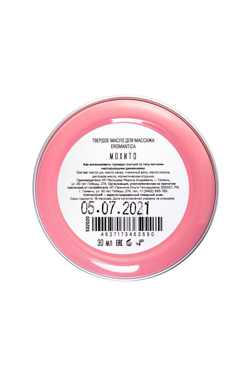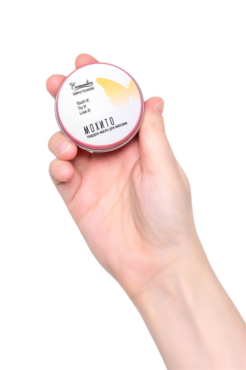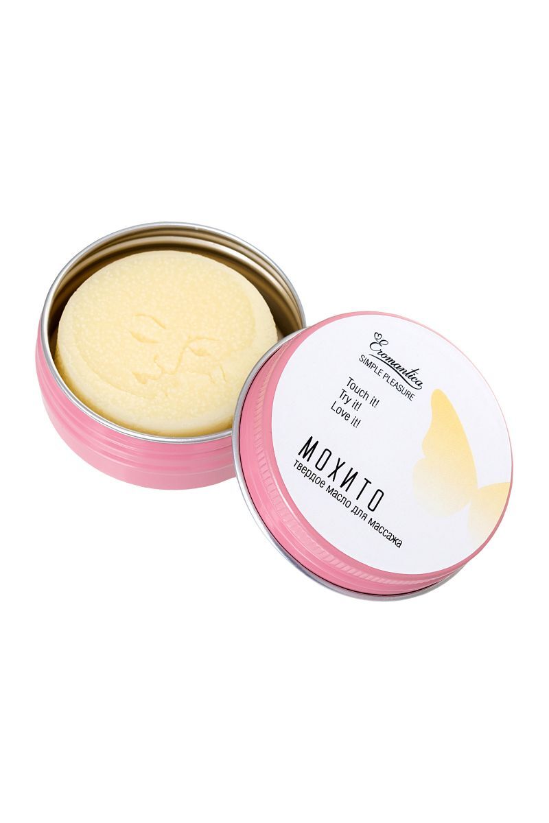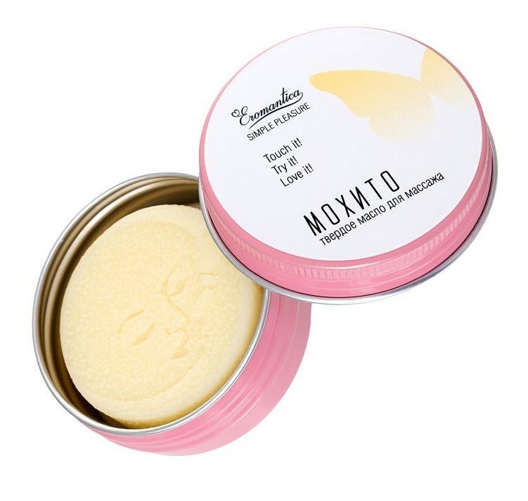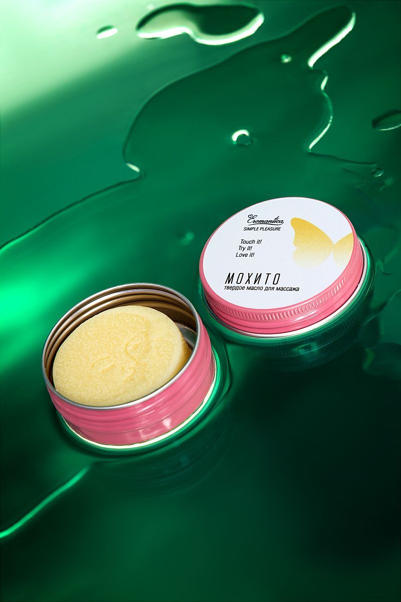 Коллекция косметики для массажа Eromantica Simple Pleasure — это натуральные массажные масла в удобном формате. С ними ты можешь создавать романтическую атмосферу и наслаждаться роскошным уходом в любом месте и в любое время. Твердое масло для массажа Eromantica «Мохито» — релакс и уход в удобном формате. Как использовать: проведи плиткой по телу мягкими массирующими движениями.